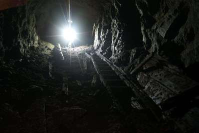 Znajdujące się tutaj złoża uranu wystarczyły zaledwie na kilka lat eksploatacji, a po ich wyczerpaniu obiekt zamknięto. Dopiero na początku lat 70` w sztolni nr 19a otworzono inhalatorium radonowe, które należało do Uzdrowiska Cieplice i które pod nadzorem Akademii Medycznej we Wrocławiu działało aż do 1989 roku. W czasie spaceru po sztolni, w której obecnie znajduje się trasa turystyczna, mijamy pozostałości po inhalatorium – wyglądające na wygodne, stalowe leżaki na sprężynach. Nachodzi ochota, żeby je wypróbować i zażyć odpoczynku po nurkowaniu. Mnie miło zaskakuje panująca tu temperatura, jest bowiem cieplej niż na zewnątrz (w Karkonoszach zaskoczył nas śnieg) i dosyć wilgotno. Sama trasa jest dobrze przygotowana dla różnej maści turystów – szerokie chodniki są równe, a nad głowami wiszą nam śpiące o tej porze roku małe nietoperze. We wnękach, które mijamy po drodze, znajdują się wystawy minerałów pochodzących z kopalni oraz narzędzi, z których korzystali górnicy. Moja uwagę przykuwają także fotografie, które pozwalają lepiej wyobrazić sobie to miejsce za czasów jego funkcjonowania. Na końcu trasy, tuż przy szybie, w którym zamierzamy nurkować, czeka interesująca, stalowa konstrukcja. Kształt jest dość oczywisty, ale mimo wszystko czuję rozbawienie, kiedy dowiaduję się, że to... bomba! Nie przyjechaliśmy tu jednak dla przyjemności ani nietoperzy (jakkolwiek ogromną sympatią nie darzyłabym tych małych lotników). Dzięki uprzejmości Filipa Długosza, który już z parkingu przywiózł nam tutaj cały sprzęt na quadzie, nie musieliśmy nic nosić, znosić ani wnosić. Luksus jak na wakacjach. Wystarczy ubrać się teraz w sprzęt, w miłej atmosferze wymieniając koleżeńskie złośliwości i przejści zaledwie kilka kroków do szybu, gdzie już czeka przejrzysta woda. Nurkowaliśmy w trójkę: Mirek Kopertowski, Sebastian Dobrowolski i ja, przy założeniu, że pod wodą się rozdzielamy. Mirek, nie dość, że uzbrojony w rebrider, to miał jeszcze własny plan i zadania na tym nurkowaniu, podczas gdy my postanowiliśmy po prostu pozwiedzać. Nasz plan oparliśmy na szkicach pierwszego poziomu, z których skorzystaliśmy przed nurkowaniem. Chcemy obejrzeć wejście na głębszy poziom, w bocznym korytarzu, a potem, trzymając się oczywiście bezpiecznych limitów, popłynąć za główną poręczówką najdalej, jak zdołamy. Zanurzamy się więc najszybciej jak to możliwe, w środkowym, wąskim szybie, twarzą do bomby. Na 30 metrach czeka wyjście na pierwszy poziom. Sam szyb opada nieco niżej, do mniej więcej 40 metrów. Tam też widzę Mirka, który puszcza mnie przodem. Kiedy wypływamy, z niemałym trudem przypominam sobie o oddychaniu. Widoczność jest fantastyczna. Wyobraźnia robi swoje, kiedy uświadamiam sobie, że korytarze kopalni Podgórze ciągną się kilometrami. Kolejne szyby prowadzące na głębsze poziomy opadają aż do 242 metrów. Tam znajduje się jeszcze jedna taka lufa, która, wedle planów, sięga aż do 500 m. Jednym słowem, pod nami rozpościera się prawdziwa otchłań! Z ciekawości dotykam ścian i belek, żeby sprawdzić, jak zachowują się osady. Ciężkie, spore farfocle opadają dość szybko, poruszone dłonią. Trzeba się naprawdę postarać, żeby tu porządnie namącić! Nam jednak zależy na jak najlepszej widoczności, więc nie kontynuuję swoich eksperymentów. Po zwiedzeniu bocznego korytarza z szybem prowadzącym głębiej, wracamy do pomarańczowej linki, która prowadzi nas dalej. Mijamy kilka innych korytarzy, w tym jedno duże skrzyżowanie, a ja zaczepiam wzrok na rozebranej tamie. Na poziomie, który zwiedzamy wciąż dużo się dzieje. Do zdecydowanie najciekawszych można zaliczyć eksploracyjny projekt Filipa i Witka, którzy zajmują się w Podgórzu podwodnymi remontami i odnawianiem starych korytarzy :) Tymczasem my wpływamy do korytarza umownie nazywanego „bakteryjnym”. Swoją nazwę zawdzięcza on unikalnym matom bakteryjnym, które zostały tutaj odkryte. To zwieszające się z belek i ścian ciemne maty, na które zapewne w innych okolicznościach nie zwróciłabym większej uwagi, uznając je za element dość obrzydliwego wystroju wnętrza. Uzbrojona w wiedzę o unikatowości farfocli, których badaniem od ponad roku zajmuje się PAN, przyglądam się im jednak z zainteresowaniem. W końcu to limity zmuszają nas do zawrócenia. Dekompresję odbywamy na 6 metrach, wciśnięci między belki, na których dało się całkiem wygodnie przysiąść. Mimo całkiem przyzwoitego czasu, oscylującego w okolicach 50 minut, nie jestem bardzo zmarznięta. Powodem może być temperatura wody, która utrzymuje się na stałym poziomie 10 stopni. Kopalnia Podgórze robi, ze względu na swój rozmiar, ogromne wrażenie i jest miejscem, do którego warto wracać i odkrywać coraz nowsze miejsca, korytarze i zaułki. Zarówno podziemne, jak i podwodne części pozwalają na ciekawy wypad, niekoniecznie tylko nurkowy. Tu wciąż dużo się dzieje!