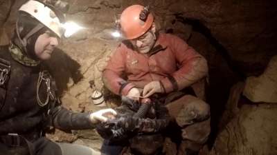 Ciąg wodny w Hessenhau znajduje się na głębokości 130m i prowadzi do niego kilka studni, po pokonaniu których wpada się w ciasny meander. Przy syfonie I (downstream) mamy zdeponowaną większość sprzętu. Podczas każdej akcji donosimy jednak te rzeczy, które nie mogą być zdeponowane w jaskini. Przed rozpoczęciem nurkowań spędzamy sporo czasu na przygotowaniach. Każdy z nurków w skupieniu składa swoją oddycharkę (ang. rebreather) uważając by błoto, którego jest tam aż nadmiar, niczego nie uszkodziło. Tym razem zdecydowałem się zrezygnować z butli z tlenem i zasilić moją oddycharkę (mCCR) z 3L butli zawierającej nitrox 80, która zarazem była jedną z butli bailout'owych. Rezygnacja z butli z tlenem, będącej dodatkowym obciążeniem umożliwiła mi jeszcze sprawniejsze pokonywanie suchych partii pomiędzy syfonami.