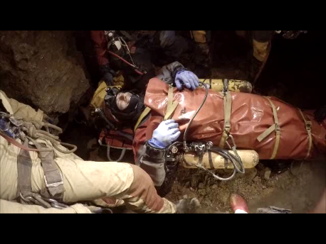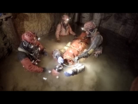 Płetwonurkowie wykorzystali mokre skafandry bez dodatkowych systemów wypornościowych i system mocowania butli po bokach zapewniający pełną redundancję układów oddechowych. Głębokość zalanych korytarzy na tym odcinku nie przekracza 3m. Tradycyjnie pewne problemy wystąpiły z zatopieniem noszy, w których transportowany był poszkodowany grotołaz. Lecz po kilku próbach, w asyście nurków, pojawiły się po drugiej stronie syfonu, gdzie czekała już ekipa ratowników zabezpieczających część „suchą” akcji.