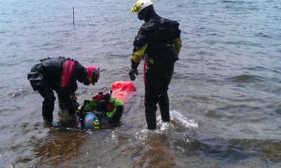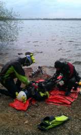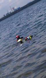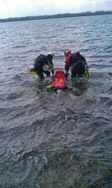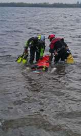 Ćwiczenia mające na celu uzyskanie idealnej pływalności układu poszkodowany-nosze-ratownicy.