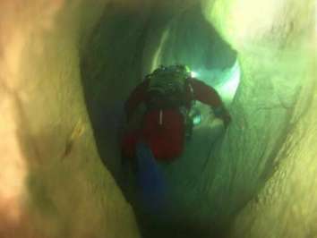 Other exploration was made in Romania in Bihor Mountains. Wiktor Bolek submerged to -80 meters in the second sump of Izbucul de la Tauz. This sump is a ramp, which goes slowly downwards. Sand and grit fill the bottom. At the depth of -74m there is a squeeze, which stopped previous explorers, but was passed this time. Afterwards the passage opens up and exploration is still possible.