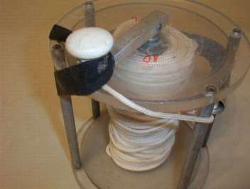 Kołowrotek musi być duży, aby zmieścić około 120m linki o średnicy 3mm lub grubszej. Linka musi być wyprowadzana z kołowrotka przez szeroki otwór, tak by można było nawijać (odwijać) markery, gumki i węzły pozostałe po poręczowaniu. Linka na kołowrotku musi być oznaczona markerami i mieć oznaczony kierunek powrotu. Kołowrotek musi być zabezpieczny przed dostawaniem się linki pomiędzy bęben a obudowę. Linkę na kołowrotku blokuje się zawijając linkę wokół korbki, na którą następnie zkłada się gumkę. Na rączce jest umieszczone kółko, na które założno gumkę za pomocą główki skowronka. W czasie poręczowania tę gumkę zakłada się na nadgarstek. W czasie transportu kołowrotek jest przypięty do półkółek jacketu (noszaka).