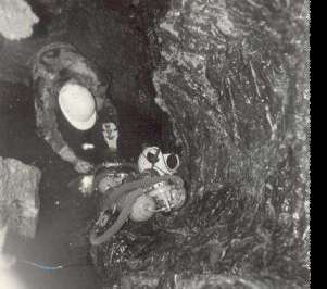 Akcja ruszyła ostatecznie 1 kwietnia. Pierwsza trójka w składzie: Norbert, Piotr i Witek przeszła pierwszy syfon i... zatrzymała się na drugim. Był głęboki, za głęboki. Zanurzali się i bezskutecznie walczyli z siłą wyporu. W końcu Witek - ten z najmniejszą wypornością założył wszystkie pasy obciążnikowe i przeszedł. Syfon był niebezpieczny, z ciasnym gardłem w najgłębszym miejscu. Witek sam dotarł do trzeciego, przeszedł go także i zatrzymał się nad studnią, której w pojedynkę i bez liny nie mógł już sforsować. Następnego dnia wyszli na powierzchnię pod wieczór: Andrzej, Ludwik i Teresa - (jedyna nienurkująca osoba w naszym gronie) - w charakterze grupy pomiarowej, zaopatrzeni w taśmę i przyrządy do rysowania, przeszli pierwszy syfon i przez pięć godzin mierzyli. Była to niebagatelna zważywszy fantazyjne kształty w Szczelinowej Sali za pierwszym syfonem. Owocem jej jest plan i opis sporządzony przez Andrzeja. Ostatnią dwójkę, która trzeciego dnia zwijała sprzęt, transportowała go powrotną drogą przez I syfon i fotografowała to co się dało, stanowili: Krzysiek i Marek. Oni mieli też okazję do wypróbowania nowej metody przechodzenia syfonów, tzn. leżenia na plecach, z ustami nad wodą - niestety metody przydatnej jedynie dla I syfonu w Dudnicy, który okazał się być po prostu jeziorkiem z małym prześwitem nad lustrem. Że pływanie w jeziorku niewiele ma wspólnego w tym samym jeziorku, niżej podpisany przekonał się na własnej skórze.