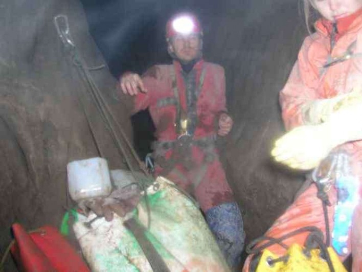 Wykonano rekonesans wspinaczkowy pomiędzy syfonami. Istnieją co najmniej dwa problemy wymagające najpewniej wykorzystania technik dry-toolingu, ze względu na brak ewidentnych punktów asekuracyjnych w ścianach i kominkach oblepionych dwucentymetrową warstwą błota, nieskażonego nigdy wcześniej ludzką stopą. Po sześciu godzinach akcji między syfonowej wynurzyliśmy się po stronie Parszywej Siedemnastki. Ku naszemu zdumieniu po raz kolejny, w kilkuminutowym zaledwie odstępie czasu pojawiła się dwuosobowy zespół grotołazów wspomagający odwrót Oliwia i Artur. Byli dzielni – dzięki.